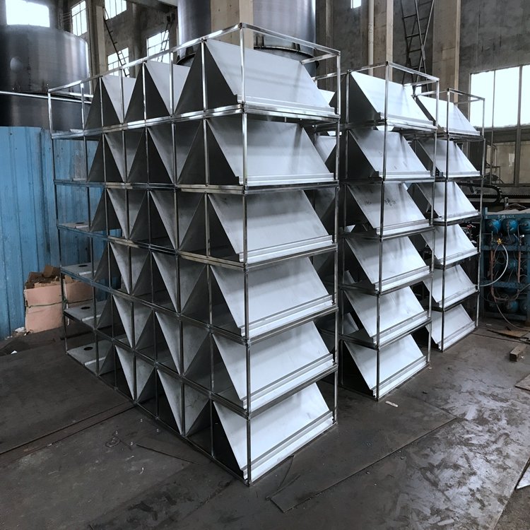 不銹鋼折板箱利用水流在折板內(nèi)的曲折流動(dòng)和不斷收縮擴(kuò)張,加快水中顆粒的相互碰撞,在絮凝劑的作用下,逐漸形成大的絮凝體并沉積下來。