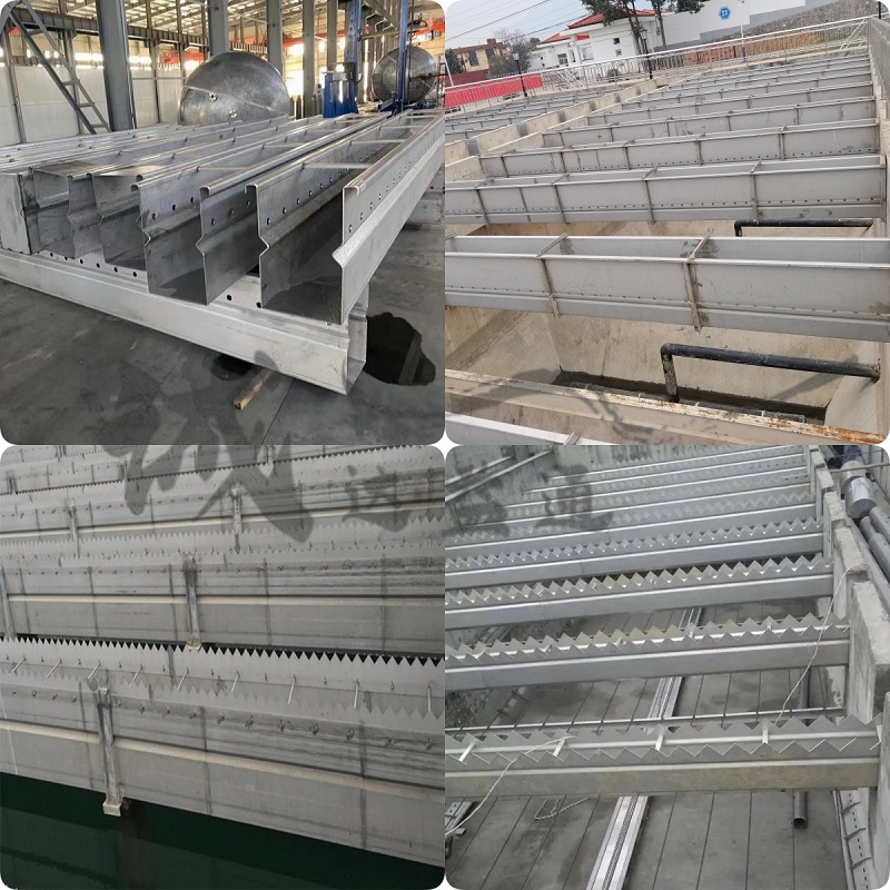 不銹鋼集水槽設(shè)置在凈水工藝沉淀池內(nèi),集水槽和過濾池內(nèi)反沖洗水排水槽。集水槽形式有孔式集水槽和鋸齒形集水槽二種,采用食品級不銹鋼材質(zhì),一次性成型,專用設(shè)備和專業(yè)技術(shù),精密高,具有表面光潔,強度高,避免對水質(zhì)銹蝕污染和定期清洗的繁雜勞動。
