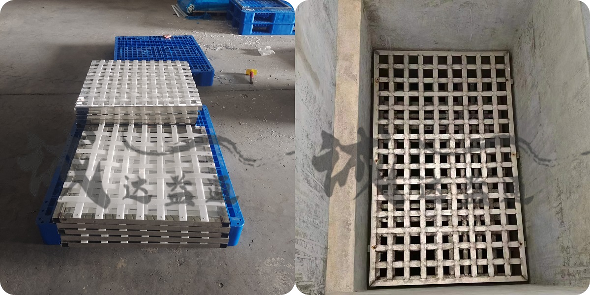 網(wǎng)格反應器須小堅井尺寸,以方便安裝和拿出,網(wǎng)格(柵條)孔眼尺寸根據(jù)流速和當前所要求的過孔流速計算而定,采用不銹鋼扁鐵或PE條上下交錯反搭焊而成。網(wǎng)格的安裝采用角鋼在網(wǎng)格下部支撐,上部壓緊或下部支掌,用漆包線捆綁的方式。