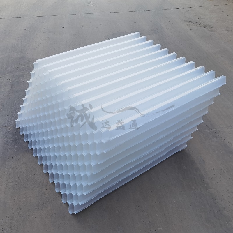 聚丙烯蜂窩斜管填料沉淀池主要是去除水中的懸浮物,根據(jù)市政污水的特點,水量水質(zhì)變化大,斜管孔徑的大小選擇不易過大,過大水中懸浮物去除率低,沉降速度慢,一些細微膠體物質(zhì)隨水流流出,會增加下一階段污水處理的處理負荷。相反過小,雨季來臨當水中懸浮物多,濁度上升時,容易造成管徑內(nèi)污泥堵塞,排泥不暢,長久運行造成斜管坍塌,影響設備的正常運行。