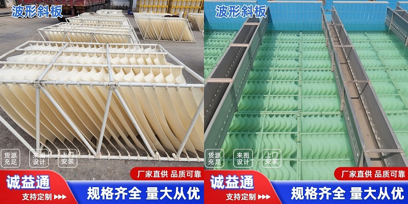 ABS側(cè)向流波紋斜板填料-該裝置采用淺層沉淀原理,以波形斜板布形式,縮短顆粒沉淀距離,同時(shí)使水流在波峰和波谷中形成渦流式水平前進(jìn)。而沉泥在波形板波谷集中垂直下滑,提高沉泥下滑性能,有利于泥水分離;具有沉淀效率高,排泥性能優(yōu)越,占地面積小的優(yōu)點(diǎn)。板材及框架和連接體均采用ABS工程塑料一次擠出成型波板,鋼度大、幾何尺寸準(zhǔn)確、板面光滑,排泥性能優(yōu)良,對原水變化具有廣泛的適應(yīng)性。