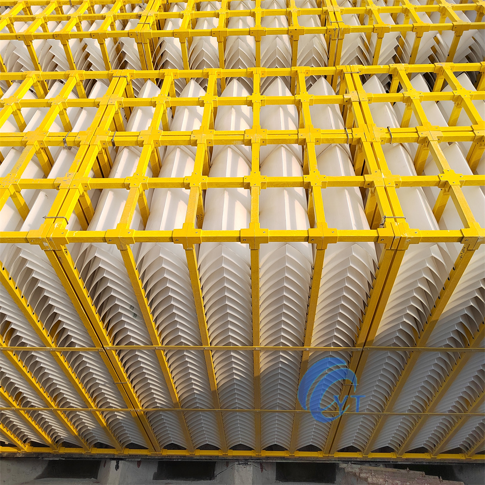 - 耐老化性能強,由于上下層斜板豎向排列的布置方式,下部斜板能夠有效避免紫外線輻射,同時框架頂部加蓋裝配,使填料具有較長的使用壽命。