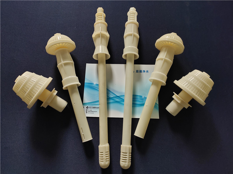 長柄濾頭安裝在濾板上(濾板由鋼筋混凝土澆鑄),其主要作用使生物濾池底部水及氣聯(lián)合反沖洗時(shí)達(dá)到配氣配水均勻。長柄濾頭采用ABS工程塑料制成,承壓強(qiáng)度高,使用壽命長,由濾帽、濾桿、預(yù)套管、橡膠墊圈等構(gòu)成。